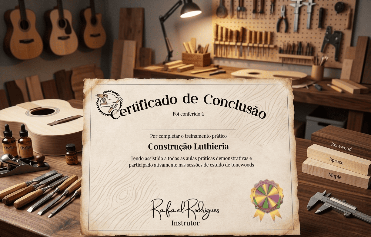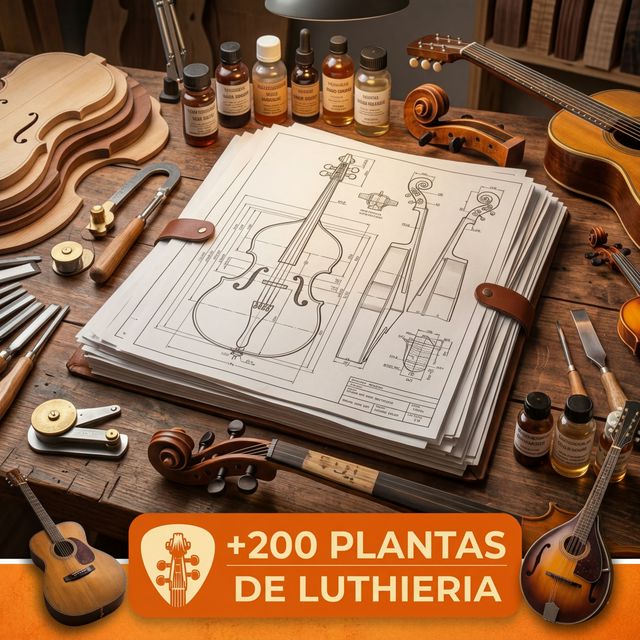 Acesso imediato a projetos de violão, cavaquinho, ukulele, viola, baixo, guitarra e muito mais — prontos para imprimir e começar a fabricar em casa.